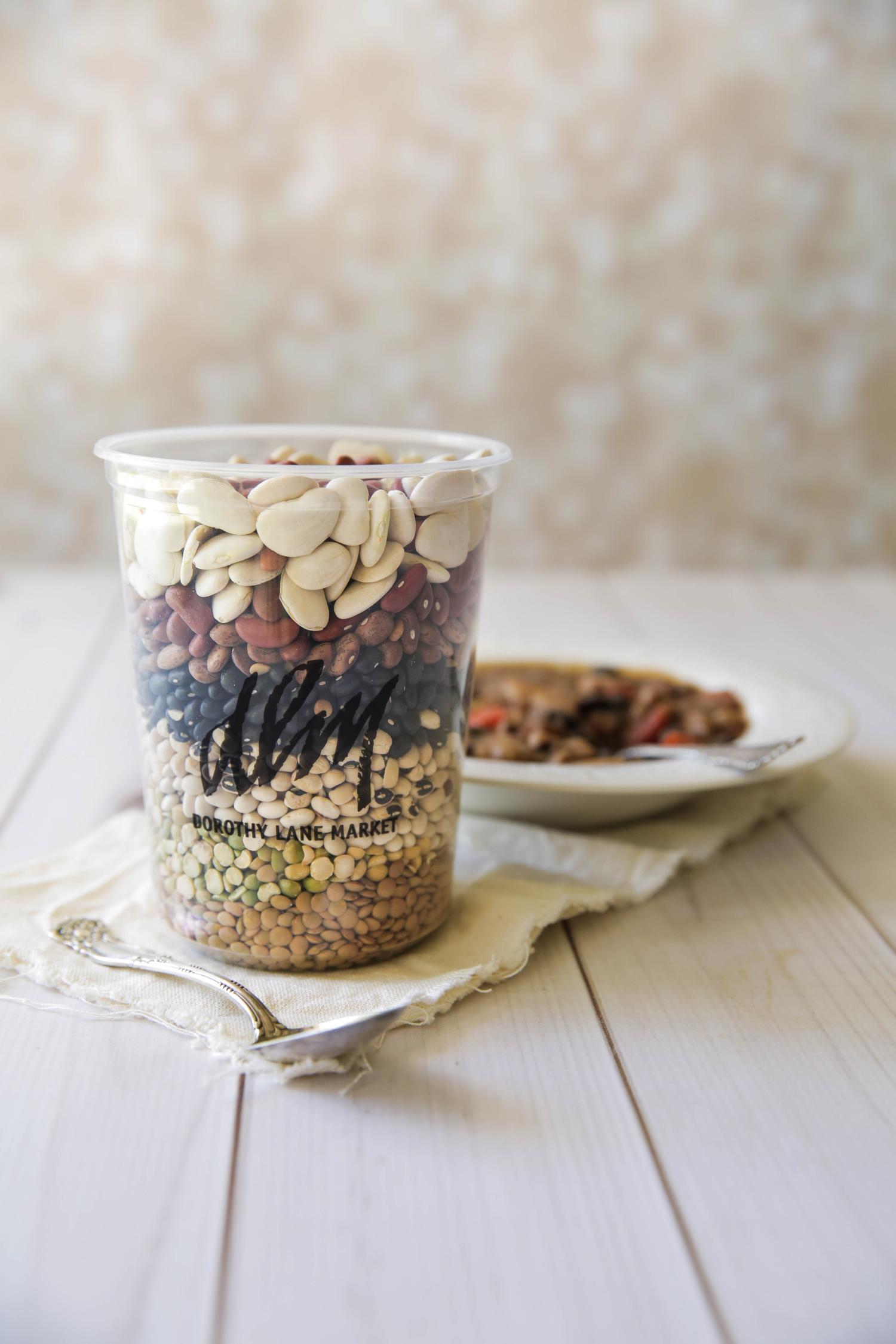 Need some beans for that Heavenly Ham® soup bone? We'll even provide a great recipe. This variety of beans will surely make the cook sing! The mix includes 1/2 cup each: pinto beans, navy beans, red kidney beans, split peas, black beans, lima beans, lentils, and black-eyed peas.