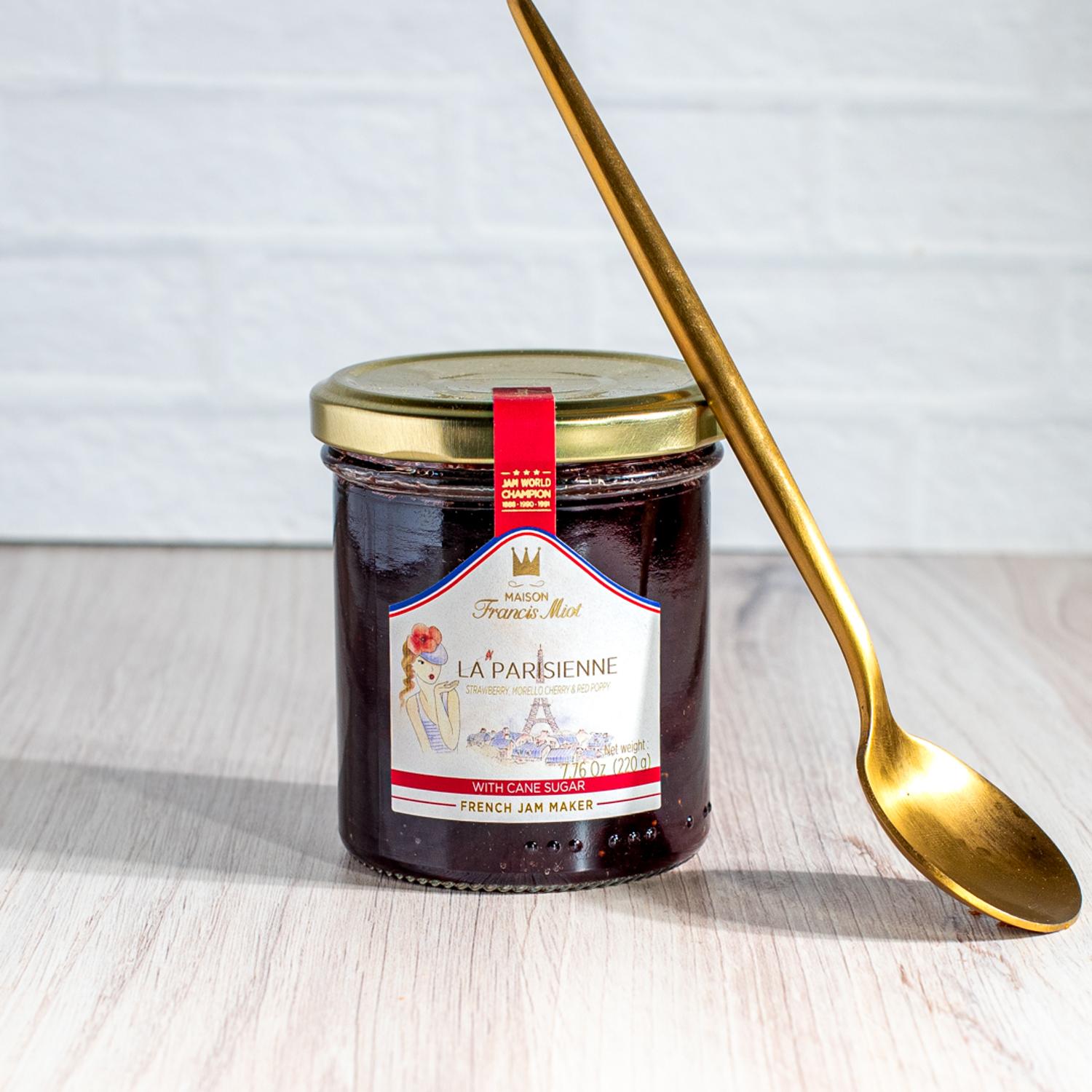 This exquisite jam by Maison Miot captures the essence of Parisian flair. A symphony of red fruits - juicy strawberries and tart cherries - dances with delicate poppy notes, creating a highly aromatic experience.