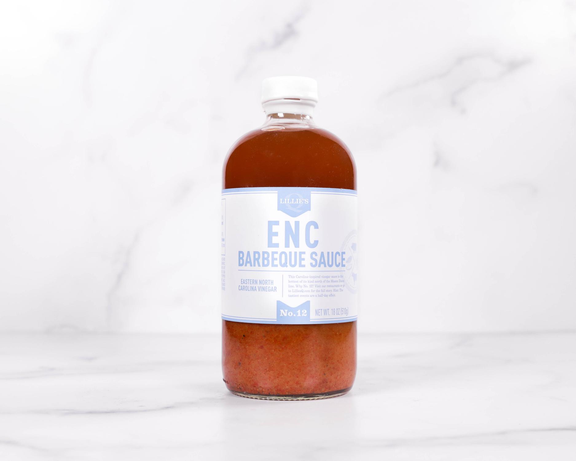 Lillie's Q ENC Barbecue Sauce is made with vinegar and spices to give this eastern North Carolina sauce a tangy kick. Made with all-natural and gluten-free ingredients, no preservatives, artificial colors, or high fructose corn syrup. Try it on pulled pork, oysters, or beef brisket, but it's great on just about anything.